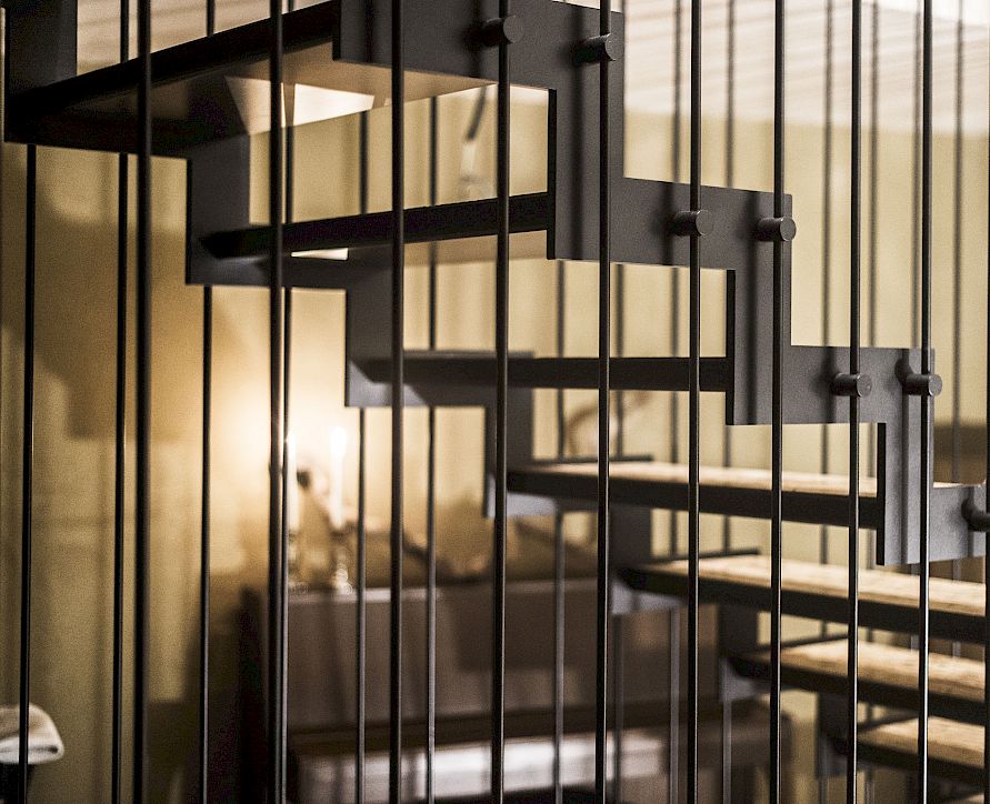 The orientation of the building volumes was chosen carefully in order to view the Schlern and the Rosengarten as the central elements. The front facades are fully glazed and allow the interior to totally open up to the landscape. The lower parts of the building, the spaces behind the stone wall host the more private sleeping rooms and bathrooms; that part of the building is embedded in the hillside situation in order to become one with the landscape. Also, the window openings were chosen to create a more intimate space.