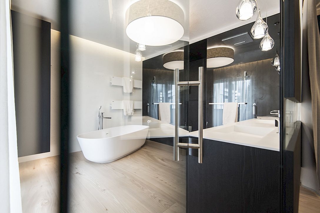 The furniture consists of dark smoked oak, conceived specifically for this project, and forms a contrast to the remaining space, determined by a bright filling. The pavement of oiled elm has an im pressive format of 380x30cm boards and pervades the entire space. It emphasizes the flowing space continuum. Three backlit panels form the highlights in the ceiling, embracing the art works of local genius Paul Flora.