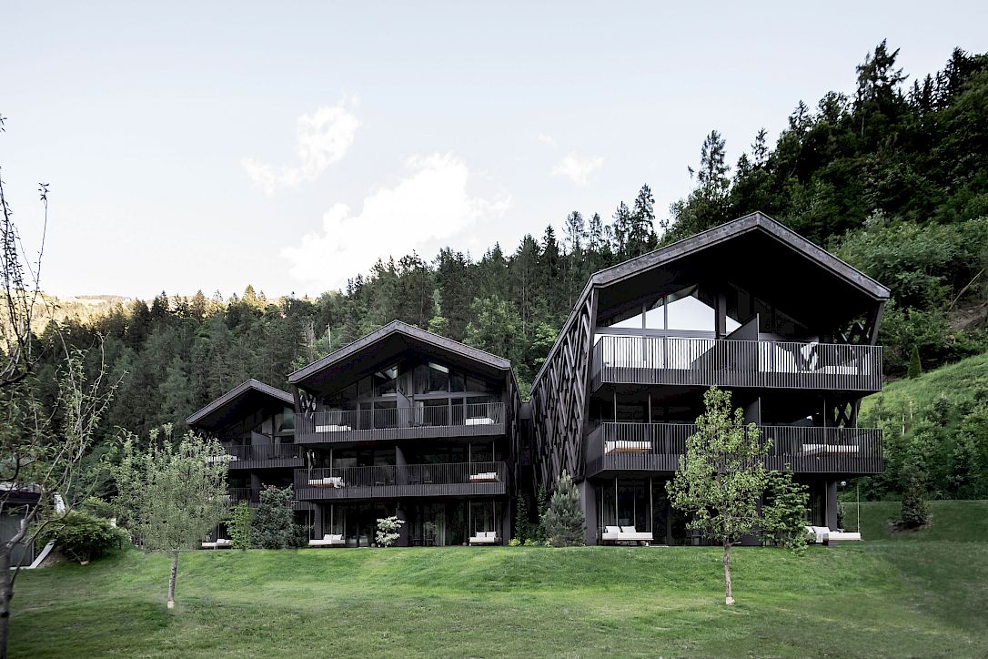 The apple, a fruit that originated in Kazakhstan and was brought to South Tyrol by the Romans, is central to the region’s cultural landscape. The Torgglerhof lies at the mouth of the Passeier Valley, its roots run deep in classic apple cultivation culture. Over time, it became a spot for people wanting to linger, connect, and soak up the scenic views. It's here that the Apfelhotel (eng. Applehotel) was built, and it has since become both an outing destination and an insider tip for guests looking for a holiday treat and special getaway - with scrumptious architecture.