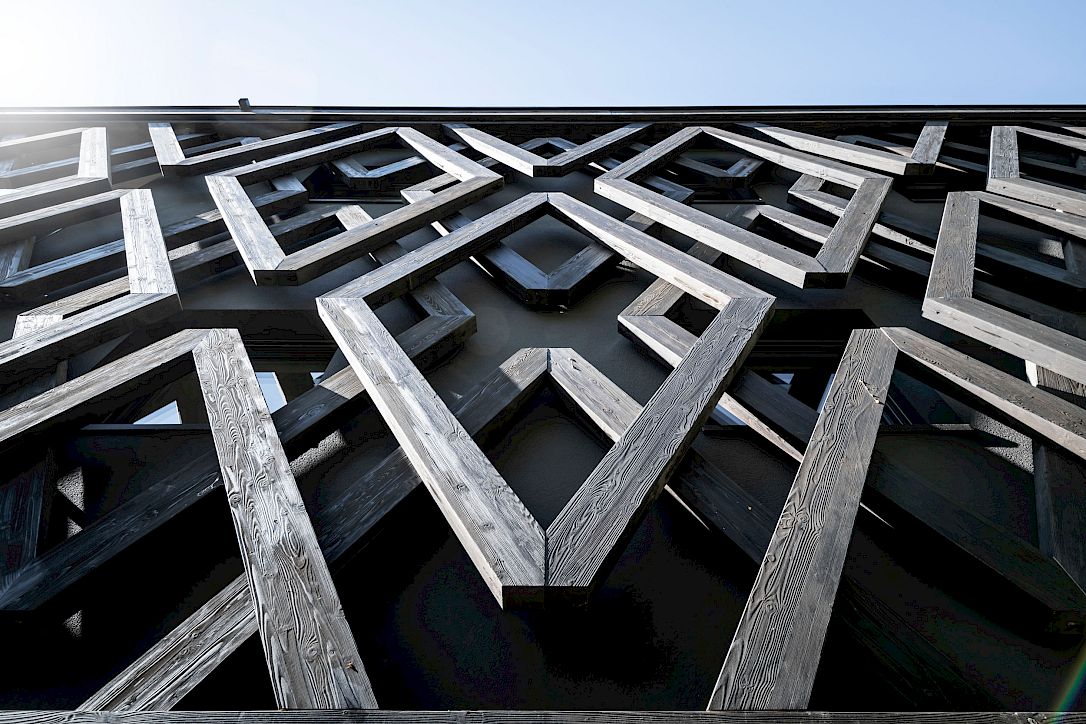 The new garden suites were constructed on the hotel’s East-facing side: three independent buildings with a total of 18 guest rooms across three floors. The saddle roofs absorb the architectural language of their surroundings and the facade blends tradition with modern aesthetics. The buildings’ outer shell has been deliberately kept dark in an ode to the traditional character of a barn house. Meanwhile, a wooden rhombus pattern - created as a transformation of classic wooden struts - gives the three buildings an unmistakably modern flair.