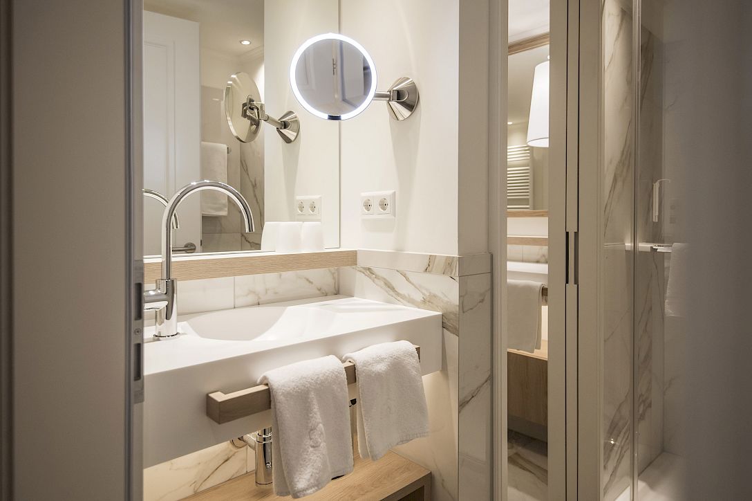 The design responds with clean lines, neutral colours and soft tones combined with locally sourced high-quality materials. Classical elements such as ornaments and cornices respond to the history of the Grand hotel, while creating a harmonious and elegant sense of space. Instead of kitsch and silly decoration, you will discover individually bespoke objects like mouse hooks, reminding that this is place designed for children.