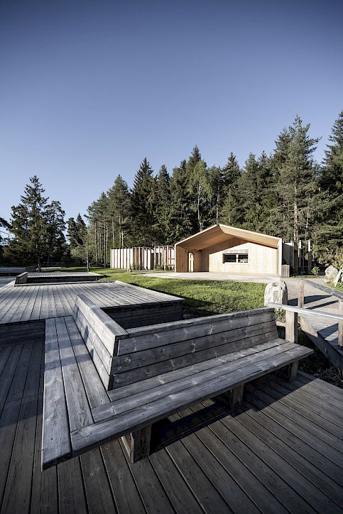 The ensemble lies in a unique natural landscape and offers beautifully framed perspectives of views of the lake, forest and mountain. The specially selected, untreated larch wood facade will be left to its natural fate - slowly changing as it’s exposed to the elements over time. The newly built bathing jetties, made with wood from the surrounding forests, branch out and dissolve into the lake, guiding visitors from the buildings into the water. Meanwhile, the less-than-conspicuous architecture highlights the flora, giving it space to gently insert itself. Every element of the project demonstrates NOA’s commitment to handling natural environments responsibly and with care while remaining true to their architectural standards. Between the freshly laid rows of reed and the new area for children, the contemporary design creates space for nature lovers to soak up the serenity in a rendezvous with nature.