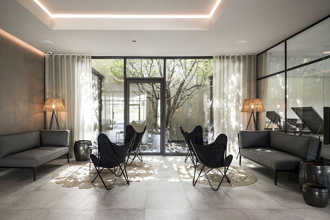 The location in the middle of the mountains gives the hotel an alpine character with a Mediterranean flair. The main building is reminiscent of a stately residence in the countryside; Deep loggias, as open spaces, visually enlarge the suites and thus intensify the special connection with nature. The new rough, earth-colored plaster combined with the new clear, horizontal wooden structure gives the hotel a noble appearance.