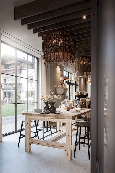 “Each piece was chosen for its strong connection to the region where it originates. The lighting alone tells a story: there are wicker lamps woven in nearby Val d’Ultimo, and clay pendants made in a workshop in Caldaro. Here, craftsmanship takes on its most authentic meaning.”